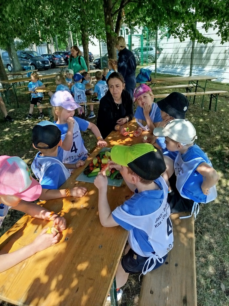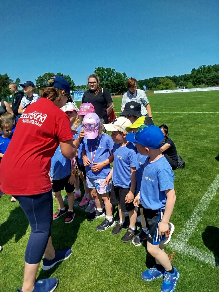 13 czerwca 2025 r. reprezentacja dzieci z grupy „Smerfy” uczestniczyła w wielkim sportowym wydarzeniu jakim była XXIV Polsko – Niemiecka Olimpiada Przedszkoli, która tradycyjnie odbyła się w Parku Sportu i Rekreacji w Strausbergu. Po oficjalnym otwarciu olimpiady (zapalenie znicza, taneczna rozgrzewka), mali sportowcy przystąpili do rywalizacji. Zadania nie były łatwe: sprint, skoki w worku, rzut piłką lekarską, jazda na hulajnodze, sztafeta. Smerfy wykazały się dużą sprawnością fizyczną, jednak ponad wszystko dobrze się bawiły. Każdy otrzymał dyplom, medal oraz drobny upominek, a dla przedszkola wygraliśmy hulajnogę. Do Chojny wróciliśmy zmęczeni, ale zadowoleni i pełni wrażeń.