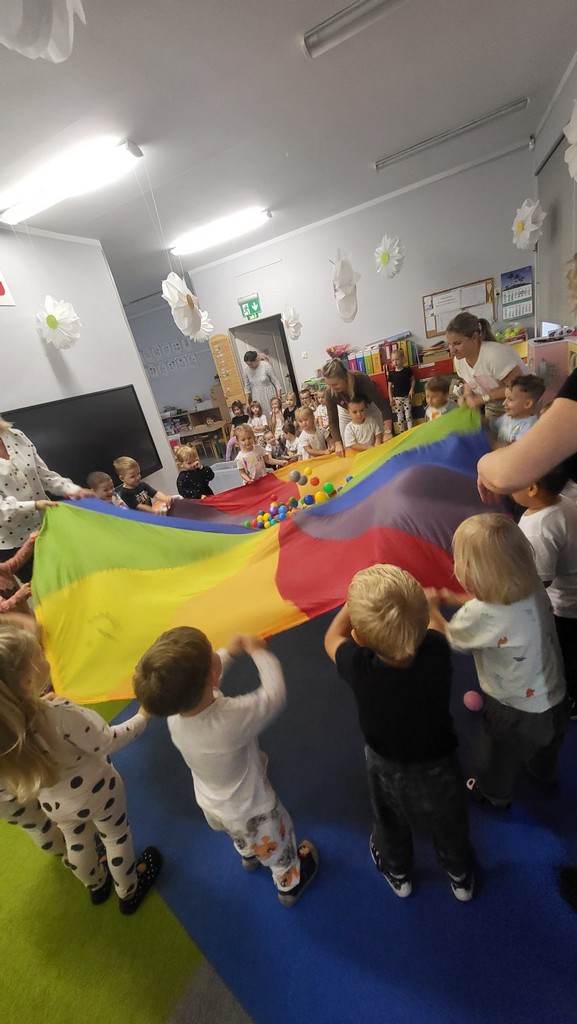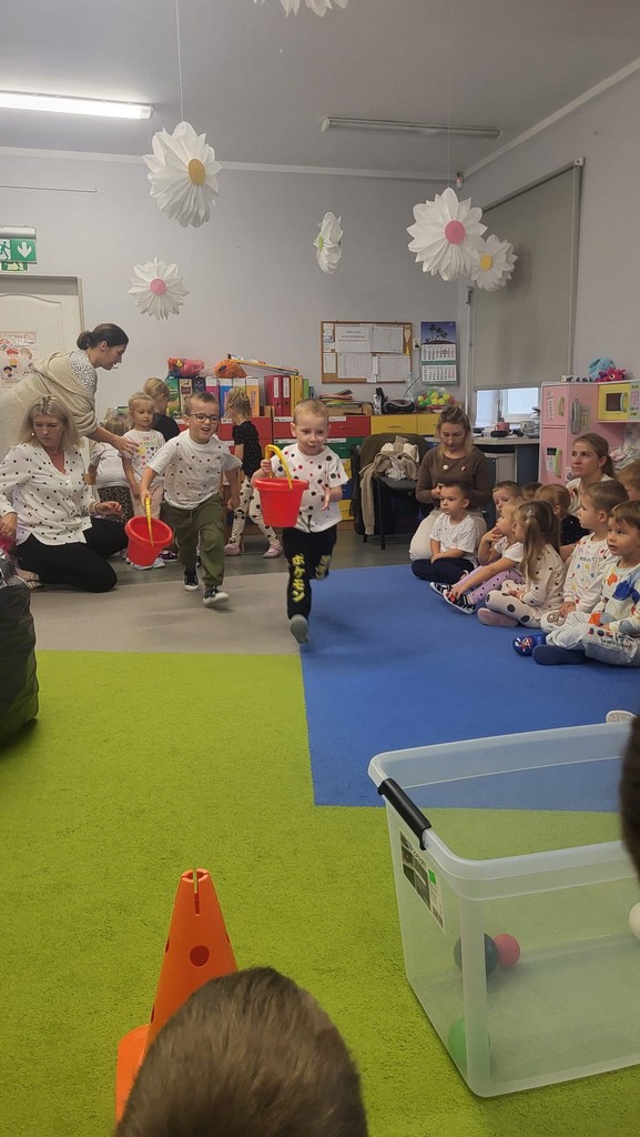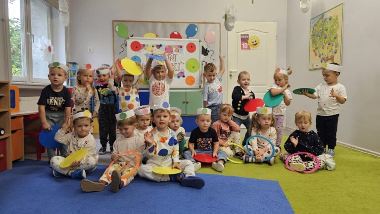 15 września w przedszkolu przy ul. Gen. Wł. Sikorskiego obchodziliśmy Międzynarodowy Dzień Kroki. Dzień Kropki jest to święto odkrywania talentów, kreatywności, odwagi, a przede wszystkim dobrej zabawy. Tego dnia kropki pojawiły się na ubraniach przedszkolaków i wszystkich pracowników naszego przedszkola. Poza wykonanymi zadaniami polegającymi na przeliczaniu i segregowaniu kropek, kodowaniu obrazków, malowaniu kropek palcami, dzieci uczestniczyły w wesołych zabawach z chustą animacyjną, przenosiły kolorowe kuleczki za pomocą wiaderek, toczyły kulki do obręczy. Przedszkolaki uczestniczyły także w zabawach z pokazywaniem do piosenki ,,Kropeczka tu i tam”, ,,Podajemy kropkę”. Jak przystało na Dzień Kropki, atmosfera była pełna radości, energii i zaangażowania. Do zobaczenie za rok!