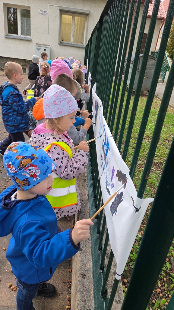 Dnia 18.09.2025r. dzieci z grup Stokrotki, Słoneczka i Jeżyki obchodziły Ogólnopolski Dzień Przedszkolaka. Rozpoczęły go kolorowym przemarszem ulicami osiedla. Następnie odśpiewano im „Sto lat”, a każda grupa zaprezentowała piosenkę z repertuaru przedszkolaka oraz plakat z uśmiechniętym logo swojej grupy. Dzieci miały okazję tego dnia wypuścić baloniki szczęścia, brały udział w zabawach tanecznych i malowały farbami na świeżym powietrzu. Po powrocie do przedszkola czekała na nie słodka niespodzianka oraz odznaka Dzielnego Przedszkolaka.