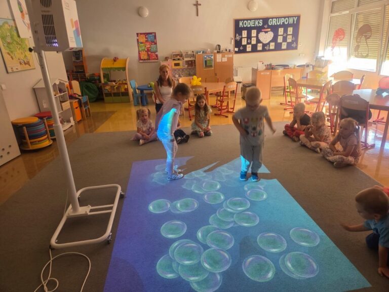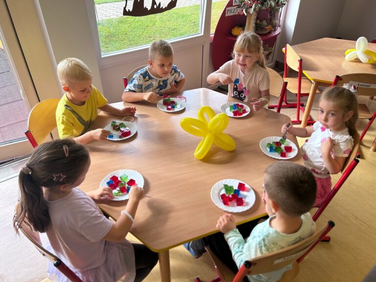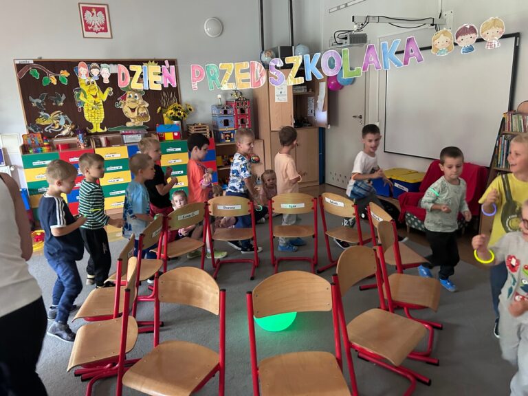 Dnia 19.09.2025 r. w grupie „Motylki” odbyła się uroczystość z okazji Dnia Przedszkolaka. Podczas tego wyjątkowego dnia na dzieci czekało wiele atrakcji i radosnych zabaw. Przedszkolaki rozpoczęły świętowanie od quizu wiedzy o przedszkolu, w którym wykazały się doskonałą znajomością zasad, zwyczajów i codziennego życia w grupie. Następnie brały udział w różnorodnych konkurencjach sportowych, które dostarczyły im wiele emocji i dobrej zabawy. Nie zabrakło także muzycznych aktywności – dzieci tańczyły do wesołych, skocznych rytmów, wzięły udział w zabawie krzesełkami oraz balonami. Na świeżym powietrzu radość sprawiła im zabawa z bańkami mydlanymi, które unosiły się nad przedszkolnym placem zabaw. Po aktywnych zabawach na dzieci czekał słodki poczęstunek – galaretki i lody. Przedszkolaki miały też okazję rozwijać swoje zdolności plastyczne, kolorując wielkoformatowe kolorowanki, a także skorzystać z atrakcji, jakie daje podłoga multimedialna. Dzień upłynął w radosnej atmosferze i dostarczył dzieciom wielu pozytywnych wrażeń. Była to świetna okazja do wspólnej zabawy, integracji oraz umacniania więzi grupowych.