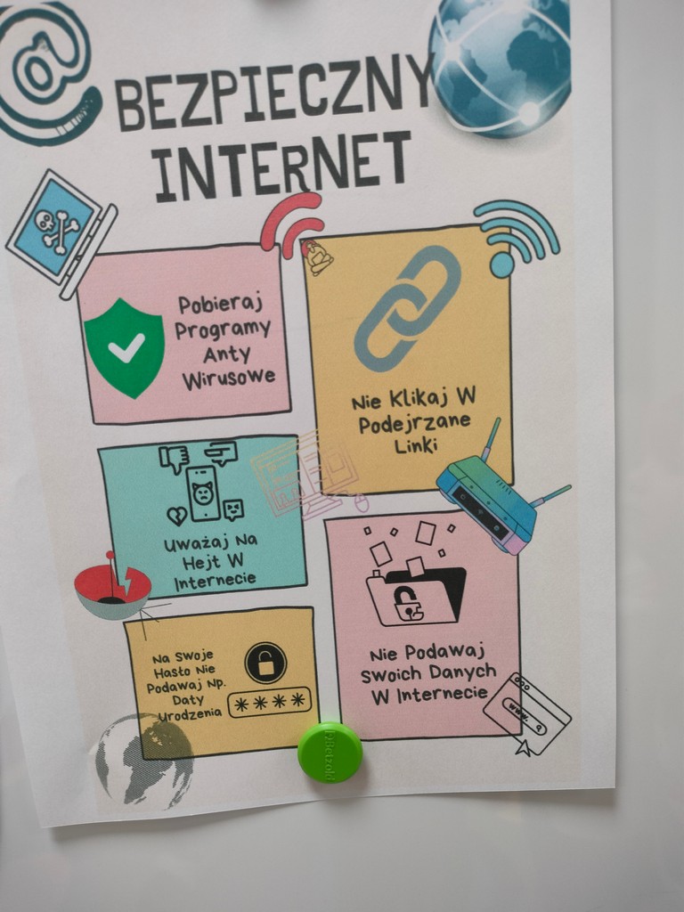 Dnia 16-go października dzieci z grupy Jeżyki: zrealizowały temat z projektu SuperMoce przedszkolaków – siła emocji i zdrowia pt.,, Jestem bezpieczny w sieci”. Celem tych zajęć było zapoznanie dzieci z internetem oraz uwrażliwienie ich na zagrożenia związane z korzystania z sieci a także wprowadzenie dzieci w świat technologii komunikacyjno-informacyjnej. Podczas zajęć dzieci tworzyły pajęczą sieć, obejrzały bajkę edukacyjną pt. ,,Sieciaki” oraz wykonywały zadania edukacyjne na tablicy multimedialnej. Rozmawialiśmy o bezpiecznym korzystaniu z internetu i o kontroli rodzicielskiej.