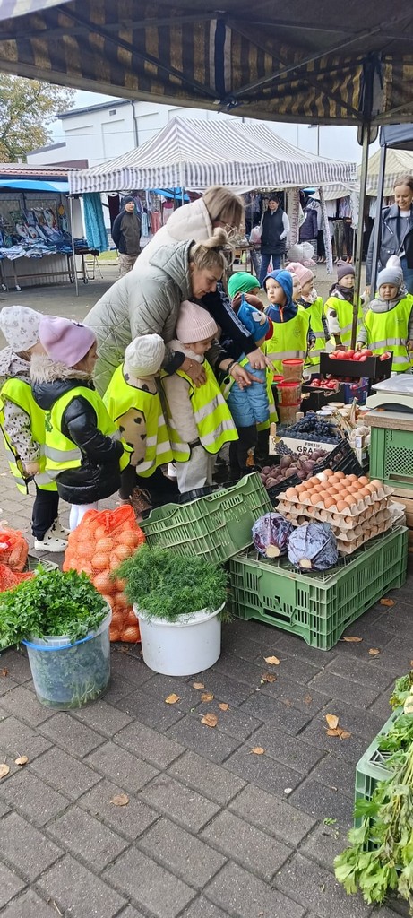 W dniu 17 października dzieci z grupy “Misie” wybrały się na spacer na rynek do warzywniaka. Celem wyjścia było poznanie różnych gatunków warzyw i owoców oraz utrwalenie wiadomości na temat zdrowego odżywiania. Podczas wizyty dzieci oglądały, nazywały i rozpoznawały warzywa oraz owoce, a także dowiedziały się, skąd pochodzą i jak trafiają na rynek. Przedszkolaki utrwalały zasady kulturalnego zachowania się w miejscach publicznych – witały się, dziękowały i cierpliwie czekały na swoją kolej. Wyjście sprawiło dzieciom wiele radości i było doskonałą okazją do nauki poprzez bezpośrednie doświadczenie.