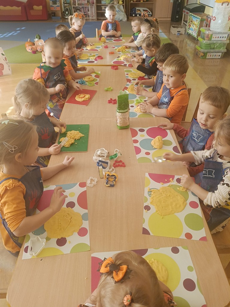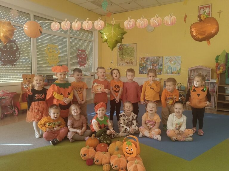 W piątek 31 października 2025r. w grupie “Misie” od rana zrobiło się pomarańczowo, a to dlatego, że przedszkolaki świętowały Dzień Dyni. Dzieci poznały budowę dyni, dowiedziały się, jak rośnie i co pysznego można przygotować z dyni. Składały również obrazek dyni z części, doskonaląc spostrzegawczość i współpracę w grupie. Nie zabrakło zabaw ruchowych z dyniami, które dostarczyły wszystkim mnóstwo energii i uśmiechu. Na zakończenie przedszkolaki lepiły z masy „dynioliny”, tworząc niezwykłe, jesienne dzieła. To był wspaniały, pełen pomarańczowych barw, kreatywny dzień – pachnący jesienią i pełen dobrej zabawy!