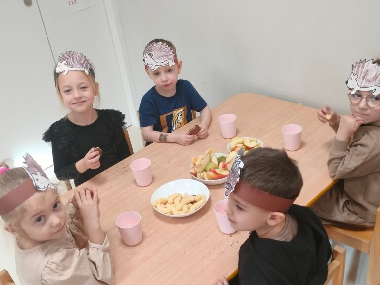 Dnia 12.11.2025r. grupa Jeżyki obchodziła Międzynarodowy Dzień Jeża. To wyjątkowa okazja, aby poznać bliżej te małe, ale fascynujące stworzenia. Było mnóstwo zabaw edukacyjnych, w trakcie których dzieci poznały zwyczaje jeży, ich siedlisko oraz rolę jaką pełnią w ekosystemie. Dzieci rozwiązywały także zagadki o jeżykach, ilustrowały ruchem piosenki i wesoło się bawiły. Odbyły się także zajęcia plastyczne, podczas których wykonywały opaski na głowę. Największym jednak zaangażowaniem dzieci wykazały się podczas robienia domku dla jeża, który znajduje się przy przedszkolu. Zadbały o to, aby jeżyk miał miły i cieplutki domek. Na zakończenie uroczystości nasze nowe przedszkolaki były pasowane na Jeżyka. To był bardzo miły i radosny dzień.