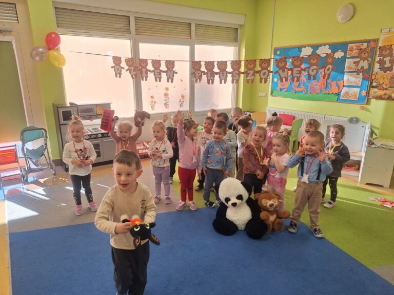 W grupie Smerfy dnia 21.11.20125r  uroczyście obchodziliśmy Dzień Pluszowego Misia. Dzieci z dumą prezentowały swoje ulubione pluszaki i opowiadały o nich, rozwijając umiejętność wypowiadania się. Wspólnie bawiliśmy się w misiowe zabawy ruchowe, które sprzyjały aktywności i radosnej integracji grupy. Przedszkolaki układały także misiowe puzzle, ćwicząc spostrzegawczość oraz koordynację wzrokowo-ruchową. Na zakończenie dzieci miały okazję posmakować miodu, poznając jego smak i właściwości.