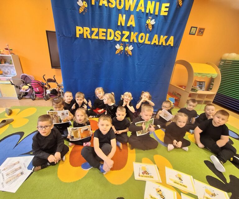 25 listopada był bardzo ważnym dniem dla Pszczółek – tego dnia odbyło się pasowanie na przedszkolaka. To uroczystość symbolizująca oficjalne przyjęcie dzieci do grona przedszkolaków. Pszczółki zaczęły dzień zajęciami o życiu i pożyteczności pszczół oraz wykonały ,,pszczółkowe” prace plastyczne. Nie obyło się też bez zabaw ruchowych i tańców oraz poczęstunku przygotowanego przez Rodziców. Następnie odbyło się uroczyste pasowanie wielką kredką. Uroczystość skończyła się wręczeniem dyplomów i medali oraz dalszą wspólną zabawą.